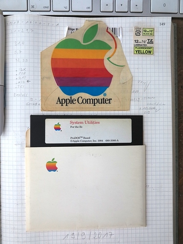 Oh, das ist ja eine neue Diskette. In der Schule hatten wir welche für die dort stehenden Apple IIe. DIe Lehrer hatten sogar einen Apple III.