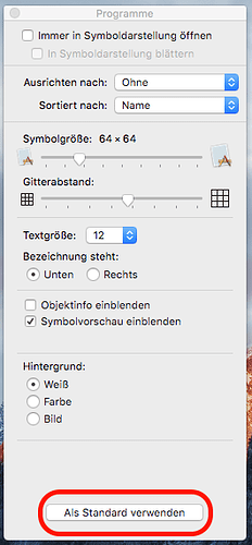 Vielen Dank euch beiden, aber genau das habe ich versucht und es wird nicht für alle Finder Fenster übernommen, sondern immer nur für das aktuell offene. Und ‘Als Standard verwenden’ hatte ich natürlich auch schon angeklickt. Genau so hatte ich es von früher in Erinnerung. Verhält sich 10.12.1 da vielleicht anders?
